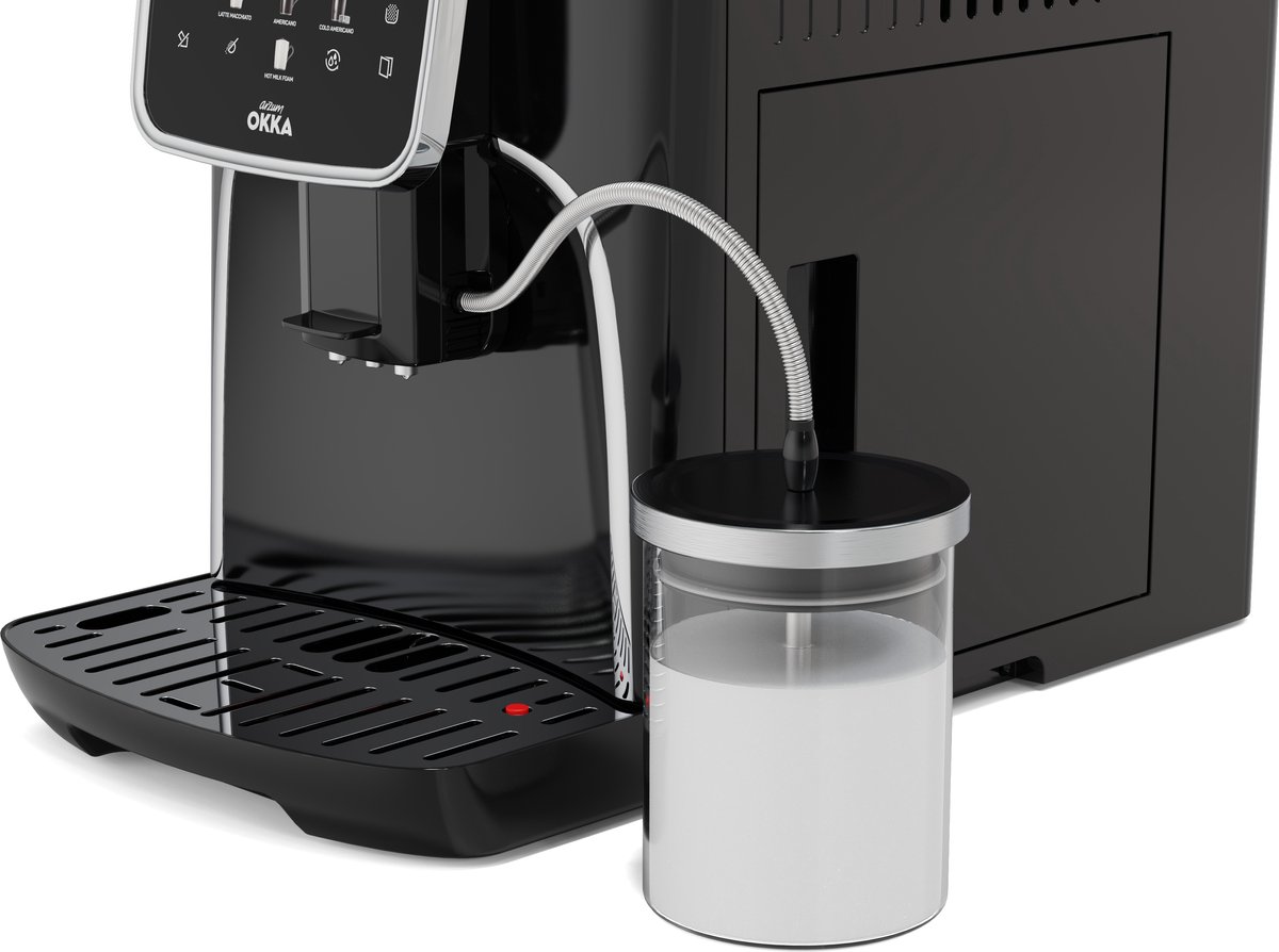 - Automatisch melkopschuimsysteem – Het geïntegreerde melkreservoir, gemaakt van glas, maakt romige melkopschuim voor je favoriete melkdrankjes. Het reservoir is gemakkelijk in de koelkast te bewaren en wordt automatisch gereinigd voor hygiënisch gebruik.