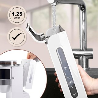 - Thermoskan inbegrepen: De stijlvolle thermoskan houdt uw koffie langer warm en smaakvol, ideaal wanneer u meerdere kopjes voor gasten of een huishouden wilt serveren.