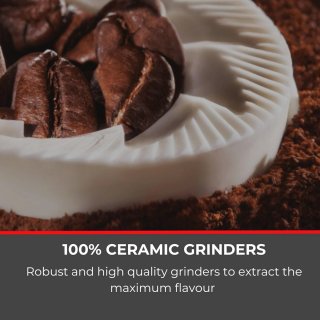 - Dosering koffiebonen: instelbaar tussen 7 en 11,5 g