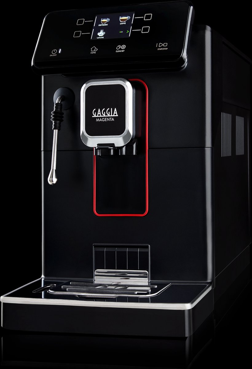 Ontdek de perfecte combinatie van professionele kwaliteit en gebruiksvriendelijkheid met de Gaggia Magenta Plus. Deze stijlvolle en compacte espressomachine brengt het beste van Italiaanse koffiekunst naar jouw keuken, dankzij een uitgebreid scala aan functies die zowel de beginner als de doorgewinterde koffieliefhebber zullen bekoren. Mede door haar professionele commerciële stoompijpje en innovatieve kleurendisplay is de Magenta Plus de ideale keuze voor wie snel en moeiteloos topklasse espressodranken wenst te zetten.