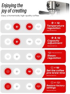 - Perfecte temperatuurcontrole — PID-regeling en instelbare temperatuur (90°C–95°C) garanderen stabiele extractietemperatuur voor consistente smaak. Ook uitgerust met koude/warm extractiemodus voor extra flexibiliteit.