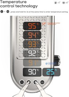 - Temperatuurinstelling: instelbaar 90°C–95°C (PID-regeling)
