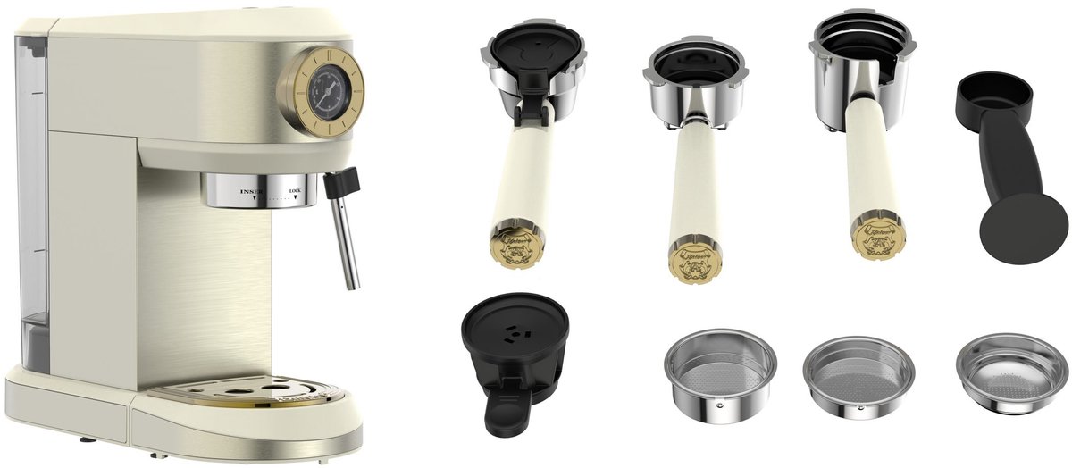 Ontdek de ultieme koffiebeleving met de Kaiser KA 2005 ElfEm Empire, een stijlvolle en veelzijdige espressomachine die perfect aansluit bij iedere koffieliefhebber. Met zijn retro design en hoogwaardige materialen brengt deze machine niet alleen functionaliteit, maar ook een stukje luxe in jouw keuken. Of je nu de voorkeur geeft aan een klassieke espresso, romige cappuccino of een zachte latte, deze 5-in-1 espressomachine biedt alles wat je nodig hebt voor de perfecte kop koffie.