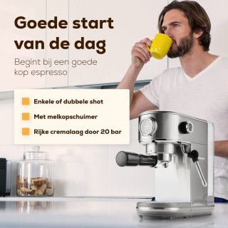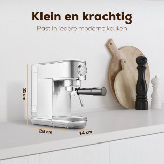 - 20 bar pompdruk voor optimale extractie en een rijke cremalaag — intense smaak zoals bij een koffiespecialist.