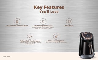 Dit koffiezetapparaat is de ideale keuze voor wie authenticiteit en gebruiksgemak waardeert. Geniet van elke kop die de traditie en het karakter van Turkse en Griekse koffie recht doet.